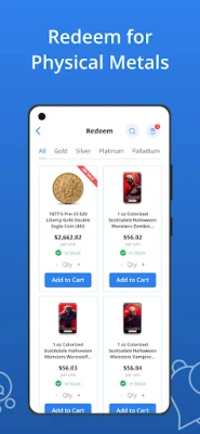 Buy and sell digital precious metals (gold, silver, platinum and palladium), securely stored and insured.