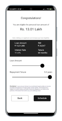 With our app, you can also adjust the loan amount and tenure using our intuitive sliders, and easily calculate your monthly EMI payments. Also, our loan amount calculator app shows a loan payment schedule or amortization table for the entire loan tenure, so you can see a breakdown of each monthly payment and the proportion of principal and interest in each payment.